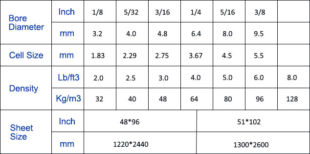 | Density | 32,40,48,64,80,96,128Kg/m³ |