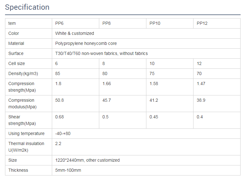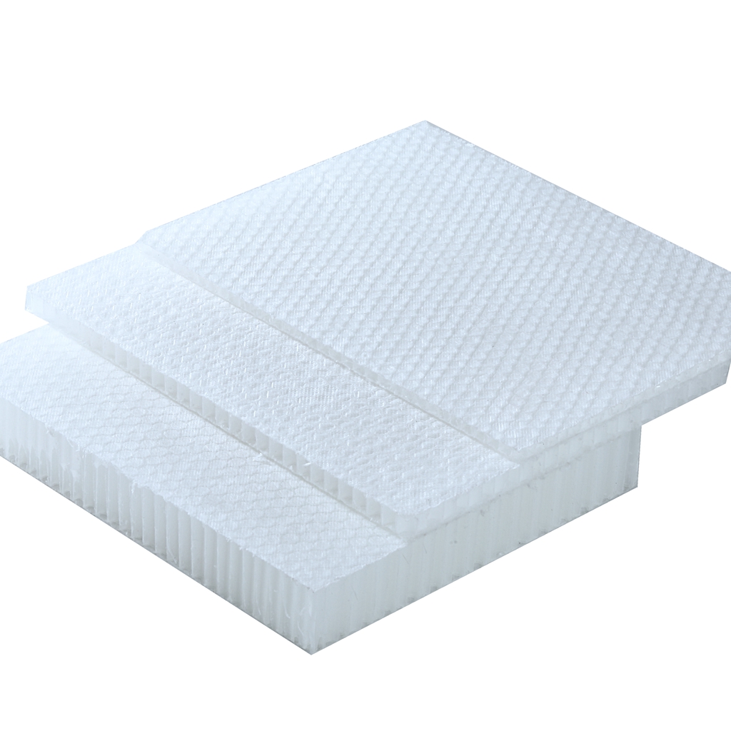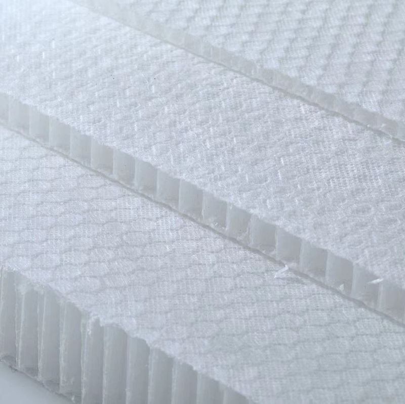 PP polypropylene honeycomb is supplied with or without a non-woven polyester veil for better bonding. It is also supplied with or without a film barrier under the polyester veil to limit the amount of resin consumption.